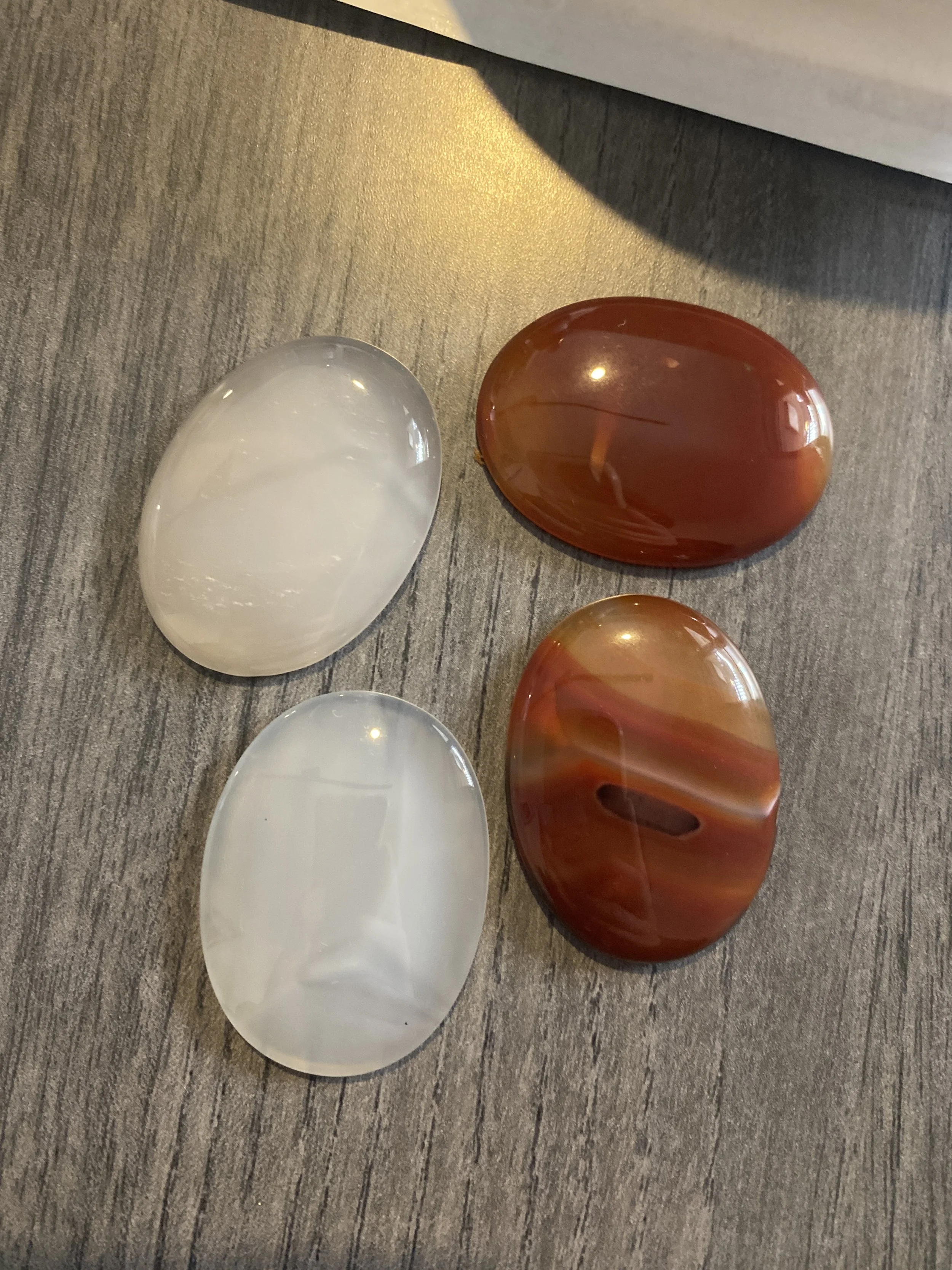 Clear agate and carnelians as possible stones for the pair pendants