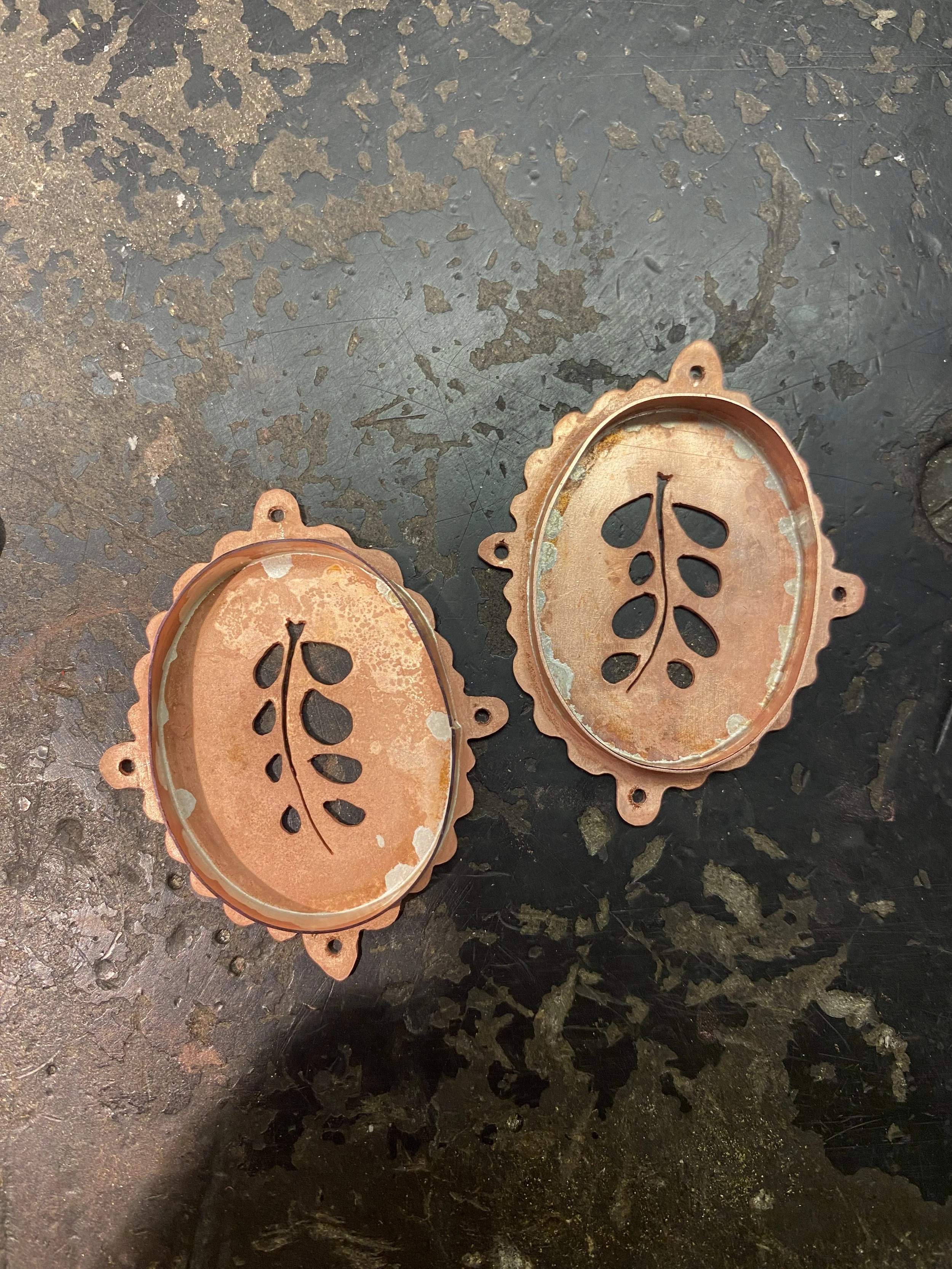 Finished pair bezel cups with floral pierceworks