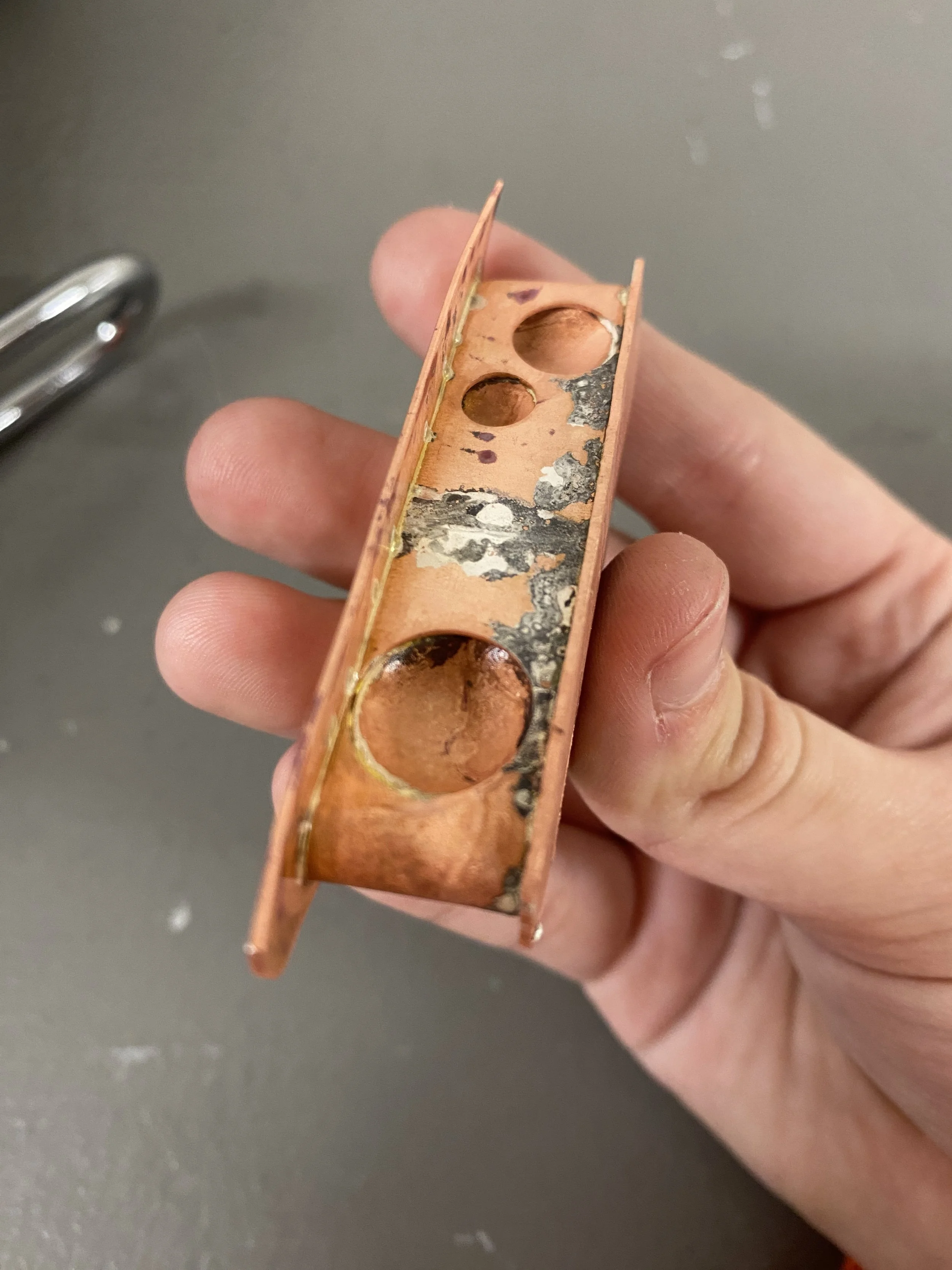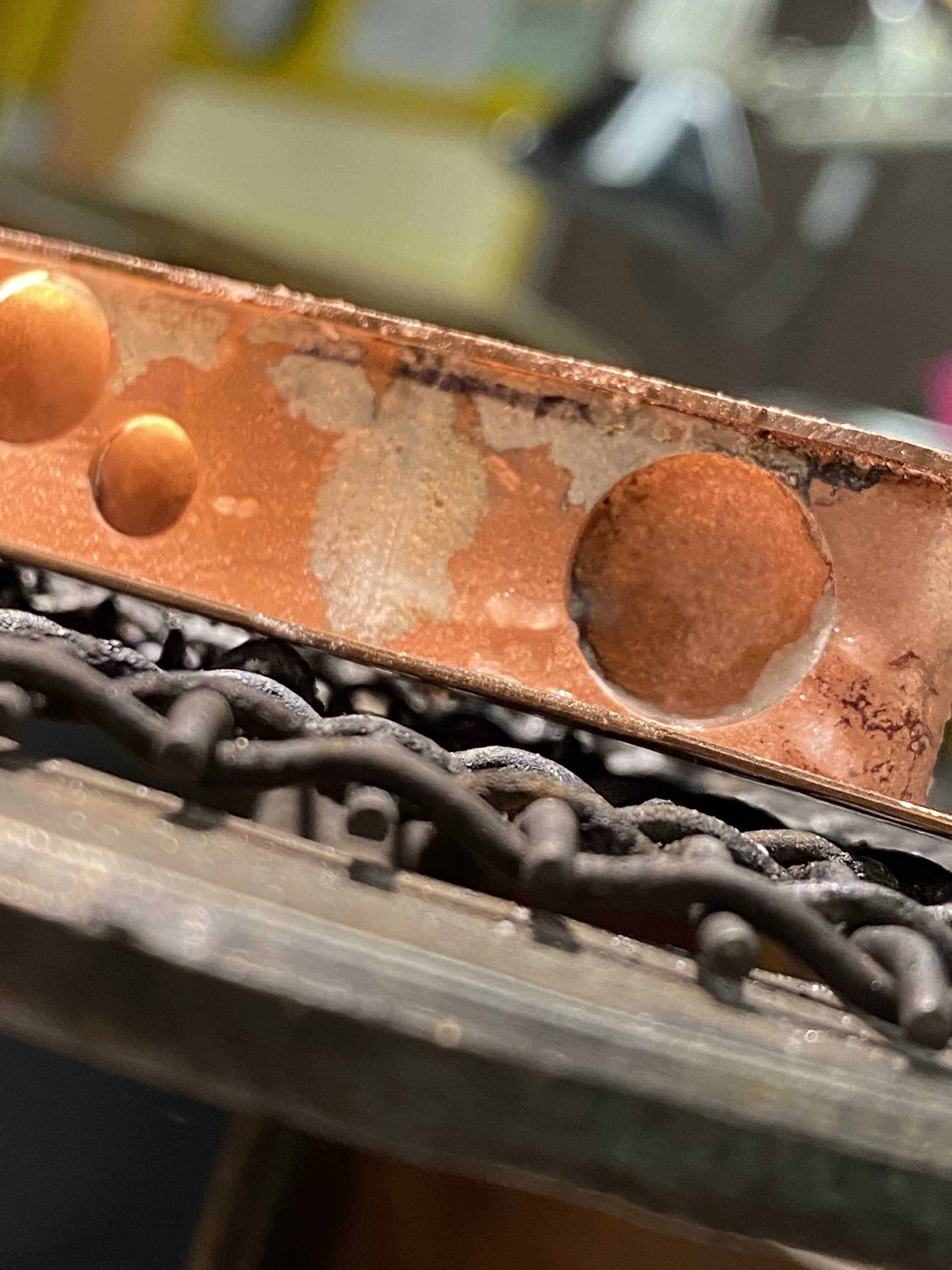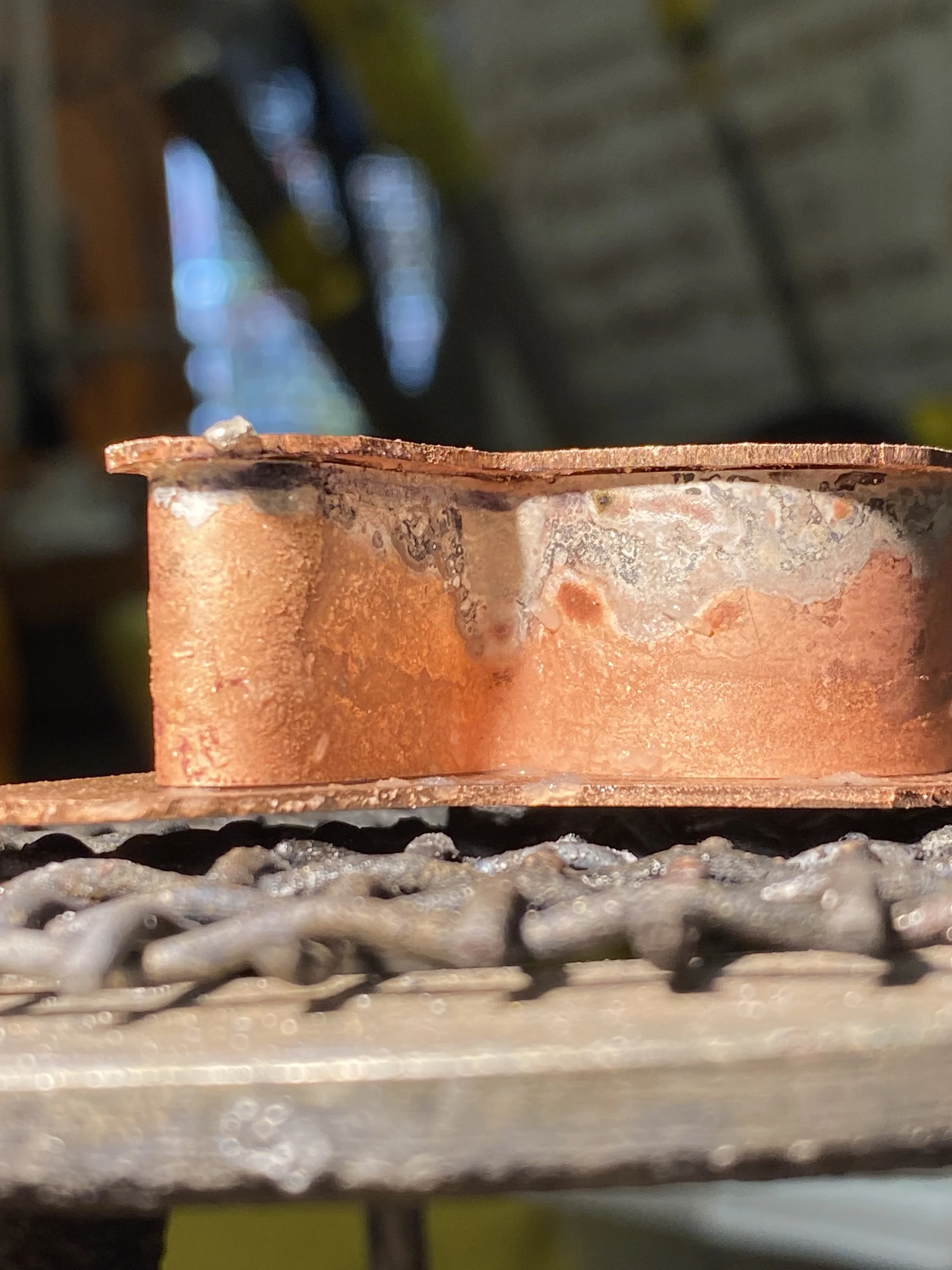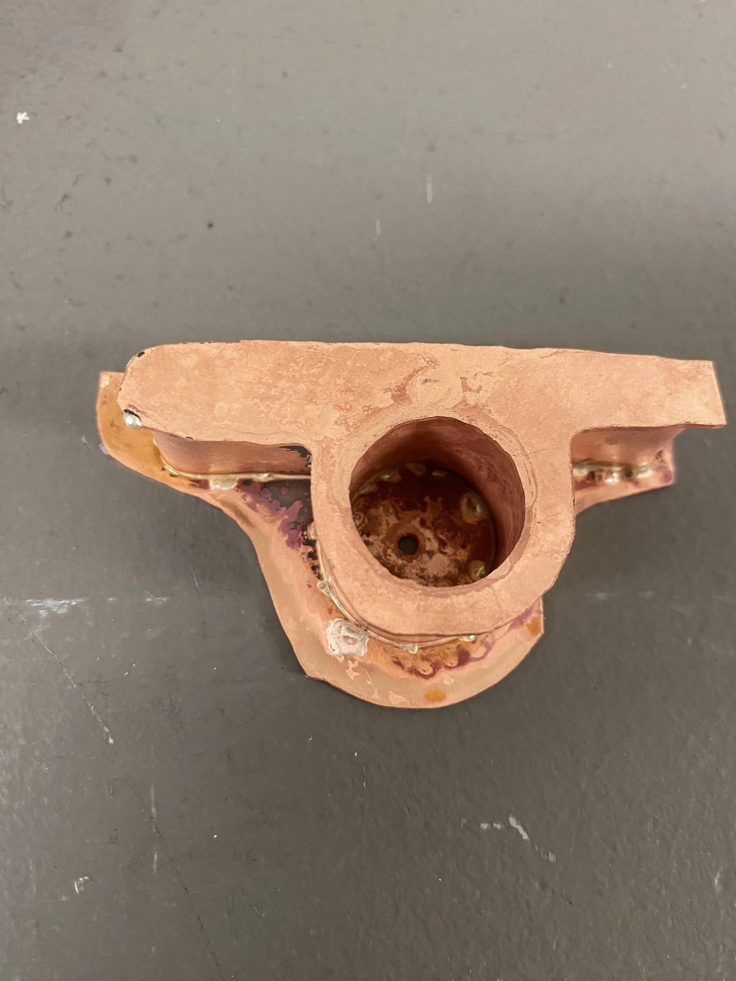 View of the filed and sanded hollow ring before the patination process. Solder spills still visible, so more sanding is needed.