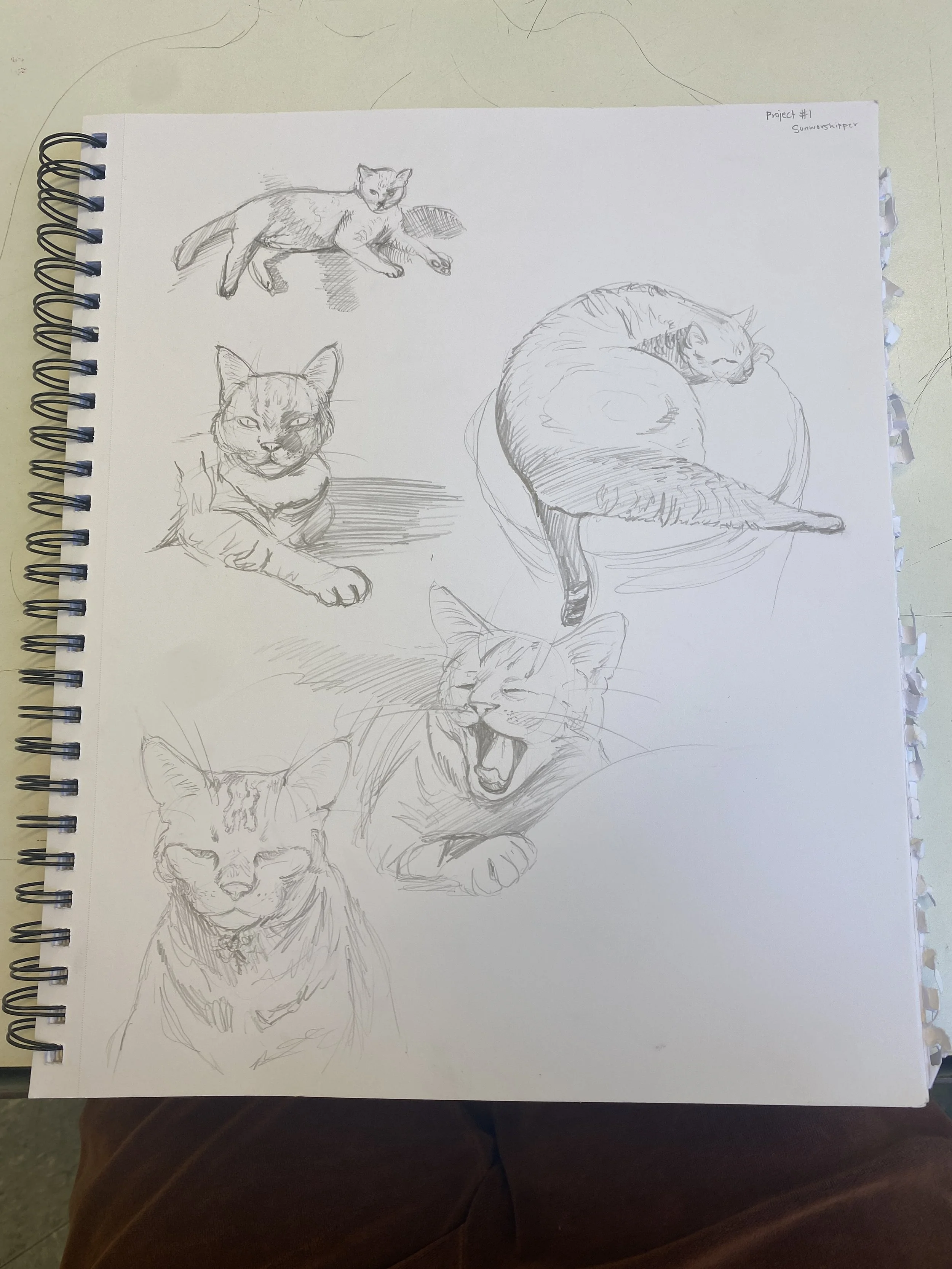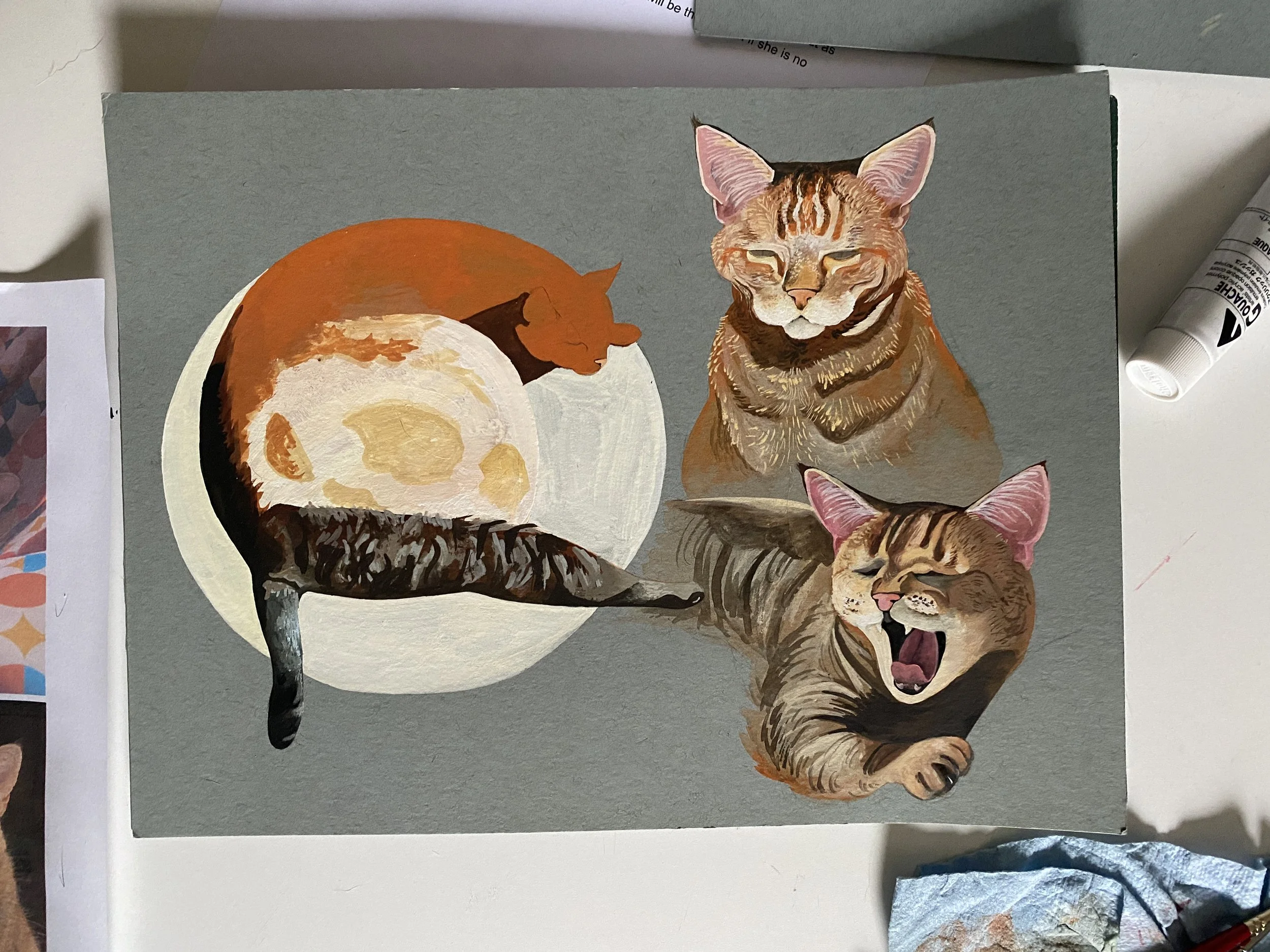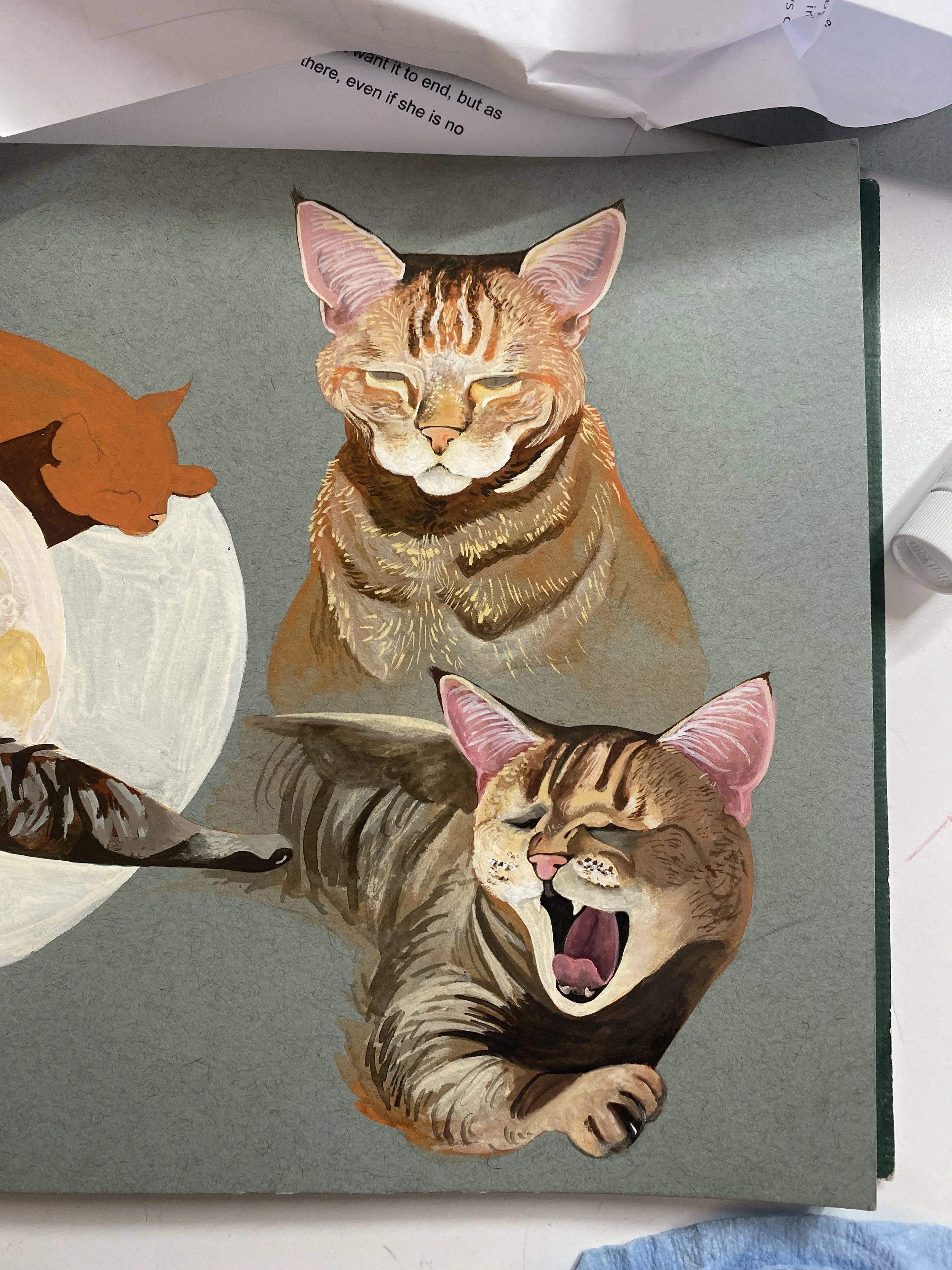 I hate thinking about when my cat is going to die; I know it is inevitable like everything is in life, but it fills me with dread thinking about a future where she is no longer here with me. I do not know what I would do without her, what I would do with my life. My cat is my everything and as the two of us slowly approach that known future, I want to commemorate her life in any way possible. I have found that photographs do not cut it. Instead, I want to draw and paint her as much as possible, depicting her in the way that I have known her for the last fourteen years.