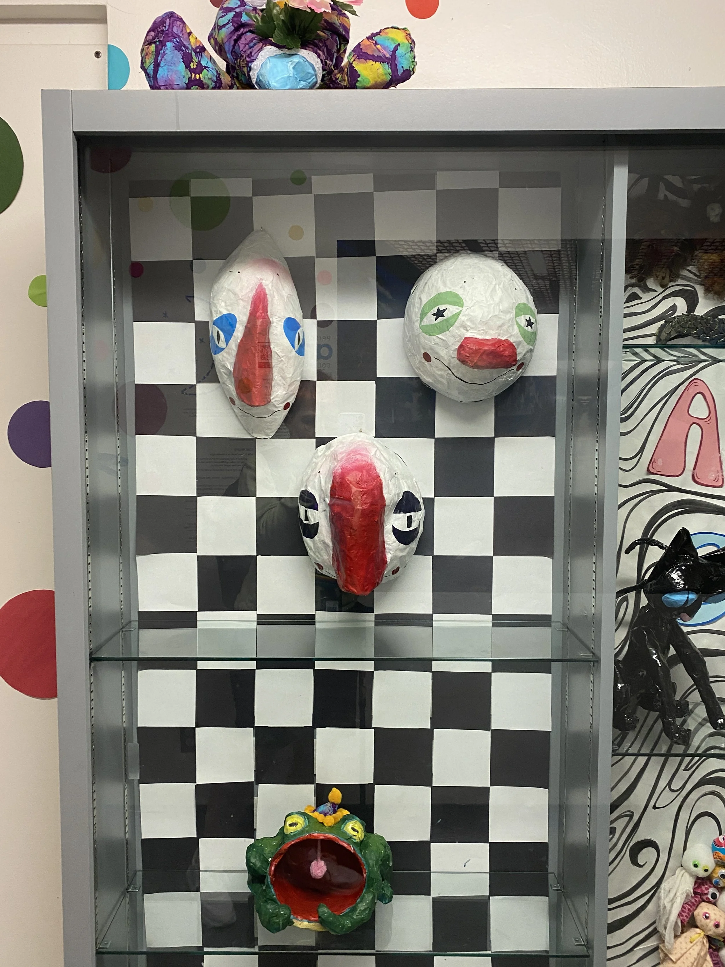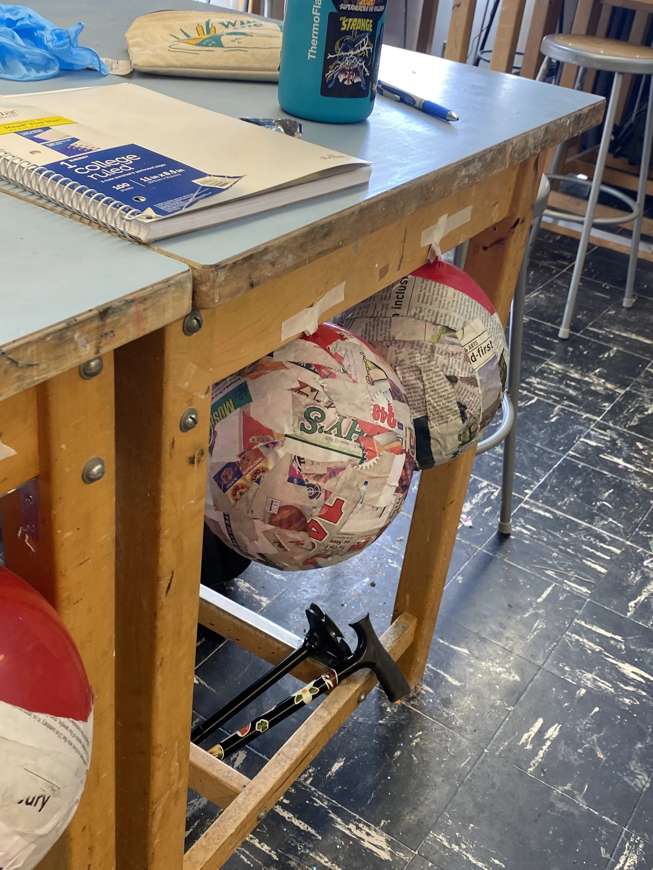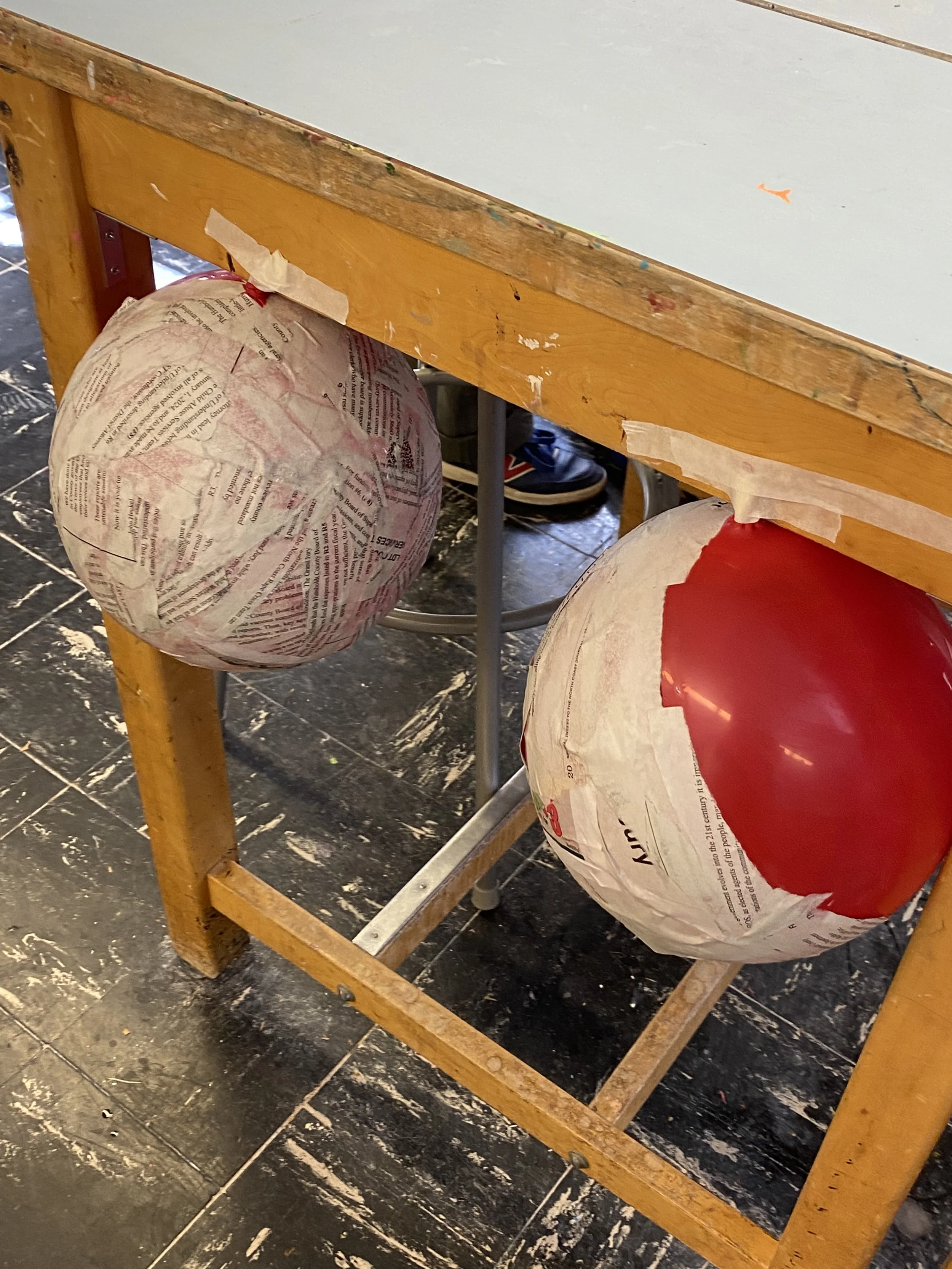 The Holy Trinity, papier mache, chicken wire, acrylic paint, gouache, 9.5 x 8.5 inches, 2023